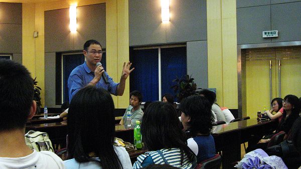 蒋红波老师说:“遇到大灾难时第一个跑出去是很积极的应对反应,恐惧、积极反应是本能正常反应,但不能过激。”蒋老师戏称,“地震来临时,自己是交大第一跑。”同学们大笑不已。