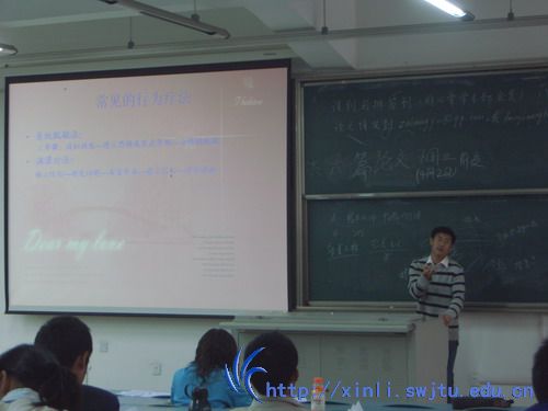 3月29日下午三点五十分,由心理咨询与研究中心和大学生心理学会联合举办的,心理健康教育骨干培训讲座之“人格障碍与调适”在犀浦校区2321教室如期举行。本次讲座由心理咨询与研究中心的杨兴鹏老师主讲,吸引了来自土木、建筑、软件、材料、机械等各个学院的学生心理委员,心理学会会员,以及许多热心关注心理学的同学们的热情参与。