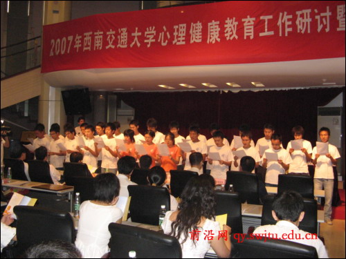 “丰产不等于丰收,大学生们成才的前提是心智健康。今天我们和成都市第四人民医院共同开通‘心理关怀绿色通道’,就是为了更好地为学生服务,使他们心智良好地迎接人生。” 7月31日上午9点,在镜湖宾馆多功能厅召开的2007年心理健康教育工作研讨暨表彰会上,校党委书记顾利亚语重心长地发表了讲话。 这也是我校首次隆重召开心理健康教育工作研讨暨表彰会,会议由3d色情