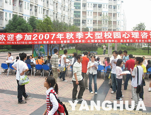 主办的秋季大型校园心理咨询会在一食堂门前举行。