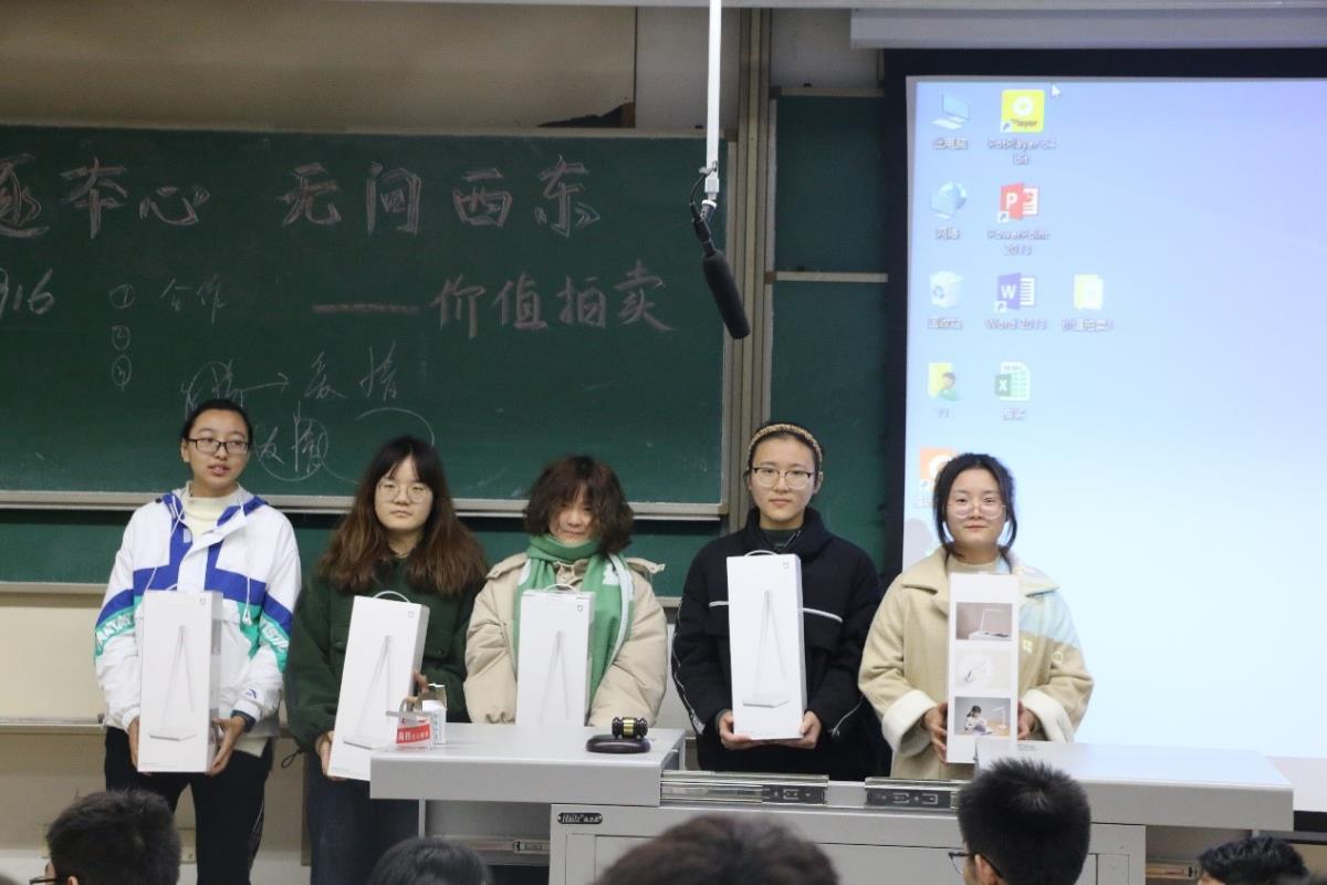 在拍卖的过程中也加入了抽奖环节,出席本次活动的同学均能参与抽奖。虽然只有个别同学能够得到幸运女神的光顾,但通过抽奖缓解了“价值”竞拍的激烈性,也让同学们有更多的时间抉择自己要拍卖的“价值”。最终每个小组都拍得至少一件拍品,单项成交价最高达到5000元。“爱心”是第一个以5000元拍得的“价值”。