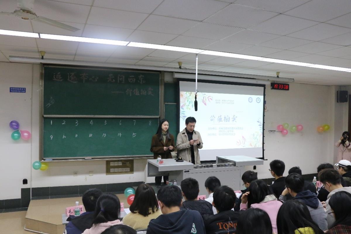 2020年11月22日19:30,“追逐本心,无问西东”价值拍卖大赛在九里校区逸夫楼4418教室拉开帷幕。本次活动由共青团3d色情