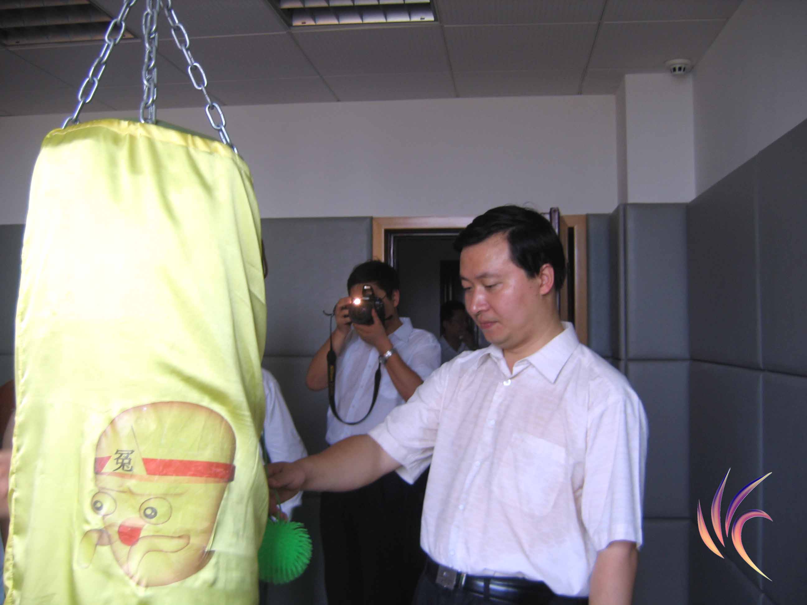 随后,张副书记一行分别参观了实验室5231室和5229室。实验室张涛老师一边演示一边向省市领导介绍沙盘治疗的原理。张副书记听后又仔细询问了实验室开放的时间等,宁主任回答说,实验室是边建设边向同学开放,开放时间一般是固定的,这样方便学生前来询问和治疗。在5229#实验室,张副书记又问起“中心”发现学生问题的途径,宁主任介绍说,有辅导员、心理委员、心理学会会员提供线索、新生测评发现、心理咨询热线电话以及同学直接给“中心”老师发短信直接反应问题的等方式。张副书记对我校扎实、细致的心理健康教育工作给予了肯定的和赞赏。