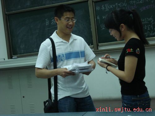 在课堂上他用幽默而深刻的语言传授知识,一句句发自肺腑的话都说到学生的心坎上,让学生牢记在心中。当被问及这两年任教有何感受时,他说,和我们在一起他很快乐,喜欢在学生中的感觉。采访过程中他给我们讲述了两件令他印象非常深刻的事。一件是在他做咨询的过程中,帮助一位遇到了严重心理问题的学生,摆脱了心理问题,使其重新投入到丰富多彩的学习生活中。没想到的是那位同学还买给他礼物,到最后成为了要好的朋友。他觉得这只是作为一名教师应有的责任,无意求回报,却让这位同学这样感激,他也很感动。另一个则是在课堂上,同学们在课上一阵又一阵雷鸣般的掌声,让他觉得,作为一个教师,值了。而后在谈到未来有什么目标时,他很低调地说,还是先把本职工作做好吧,然后努力提升自己,要不断的学才能更好的帮助同学。