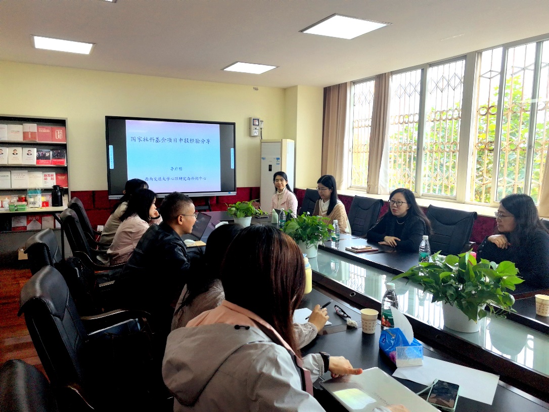 随后,进入经验分享交流。李启明副教授结合自身成功申报国家社科基金项目的经验,深入浅出地分享了项目选题的技巧与心得。他强调,选题应紧跟学科前沿,紧密结合国家需求,同时注重研究的原创性和实用性。
