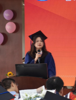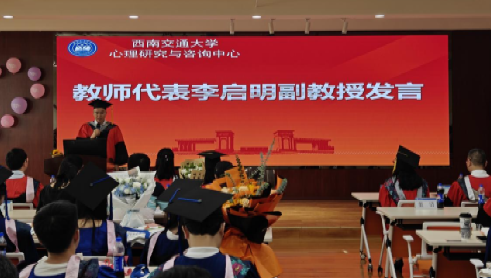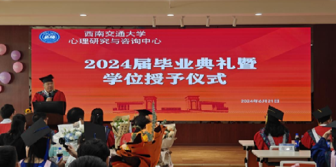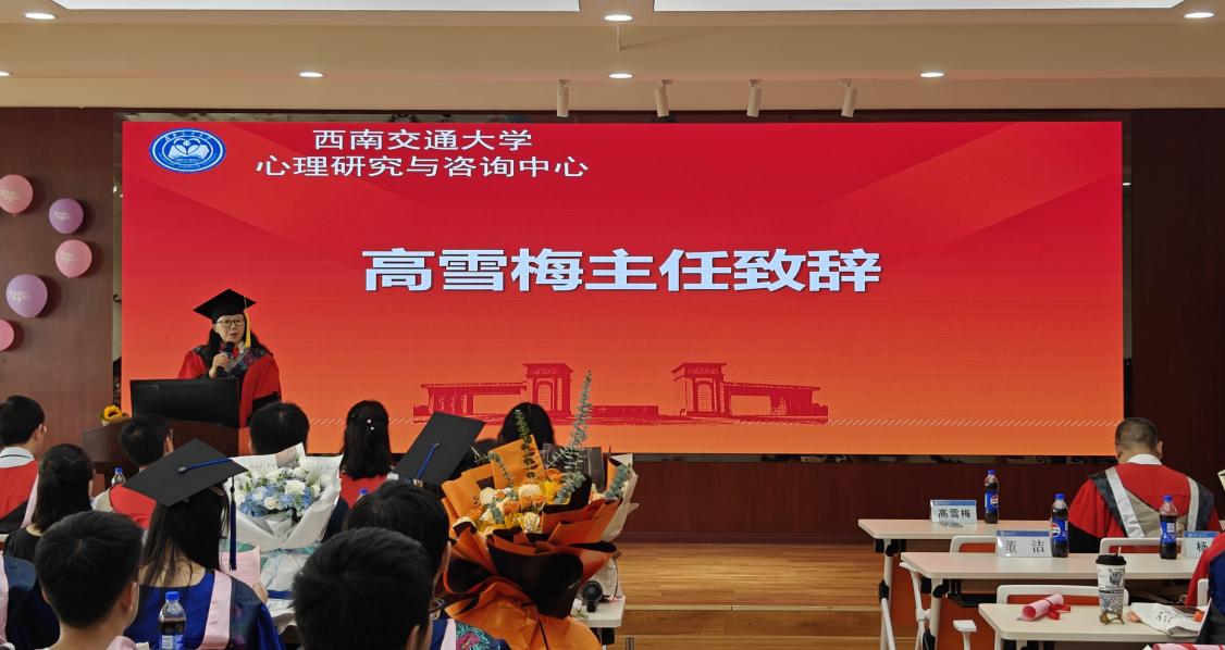 在毕业典礼伊始,高雪梅主任代表中心发表了热情洋溢的致辞,向即将迈出校园大门的毕业生们致以最美好的祝愿。她鼓励同学们以开放的心态迎接即将到来的多彩人生,希望他们能够持续保持对心理学的热爱和对知识的渴望,坚定自己的职业理想,承担起社会责任,坚守职业道德,以正直和善良的行为准则引导自己的每一步。
