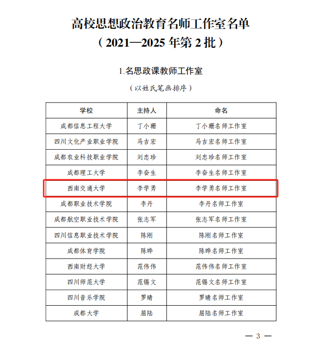 近日,中共四川省委教育工作委员会、四川省教育厅公布(2021—2025年第2批)高校思想政治教育名师工作室名单。学校马克思主义学院副院长李学勇教授主持的“李学勇名师工作室”入选名思政课教师工作室,土木工程学院辅导员商姚主持的“精准‘淬能’辅导员工作室”入选名辅导员工作室,3d色情
