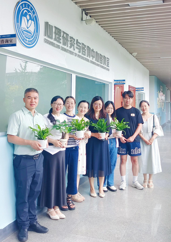党委书记刘咏梅、主任高雪梅、副主任李启明带队,与学生代表一同前往两校区心理咨询室和课堂,为正在授课和忙碌工作的教师们送上节日的祝福,感谢老师们的辛勤付出。这份走进一线的关怀,让老师们感受到了来自中心领导和学生真切的温暖与诚挚的祝福。