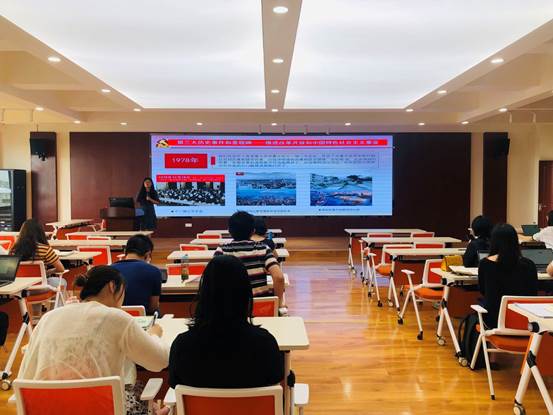 刘咏梅书记主要从建立中国共产党、成立中华人民共和国、推进改革开放和中国特色社会主义事业,这三大历史事件和三大里程碑,讲述中国共产党是如何矢志践行初心使命的一百年,是如何筚路蓝缕奠基立业的一百年,是如何创造辉煌开辟未来的一百年。让大家从党非凡的历程中读懂领悟中国共产党为什么“能”、马克思主义为什么“行”、中国特色社会主义为什么“好”这三个重大理论问题,引出党史学习的重要意义。刘书记通过讲述一个个生动鲜活的人物事迹,向大家展示了中国共产党人优秀的品格和坚韧的毅力。她提到,百年风霜雨雪,我们党从最初的五十多名党员发展到今天九千一百多万名党员,战胜一个又一个困难,取得一个又一个胜利,中国共产党始终保持求真务实、与时俱进的品质,以人为本、执政为民的执政理念深得民心。