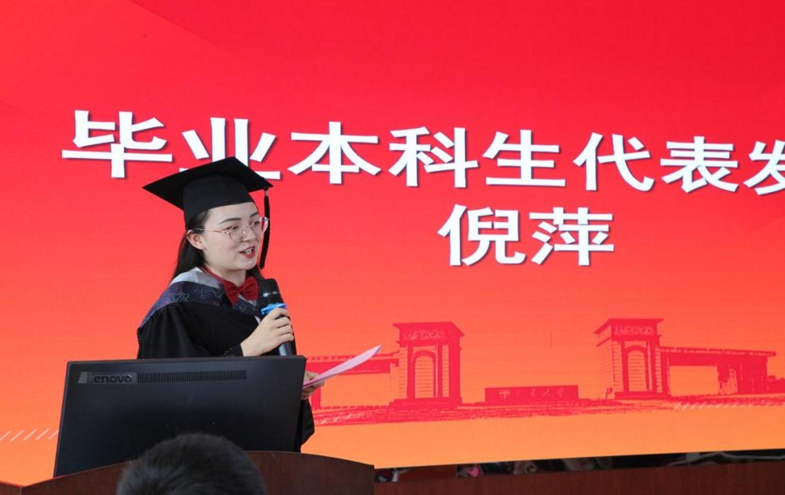 的培养下筑梦扬帆、不断超越。最后她带领全体毕业生进行集体宣誓,全体毕业生庄严承诺用奋斗筑梦青春,用青春建功立业。