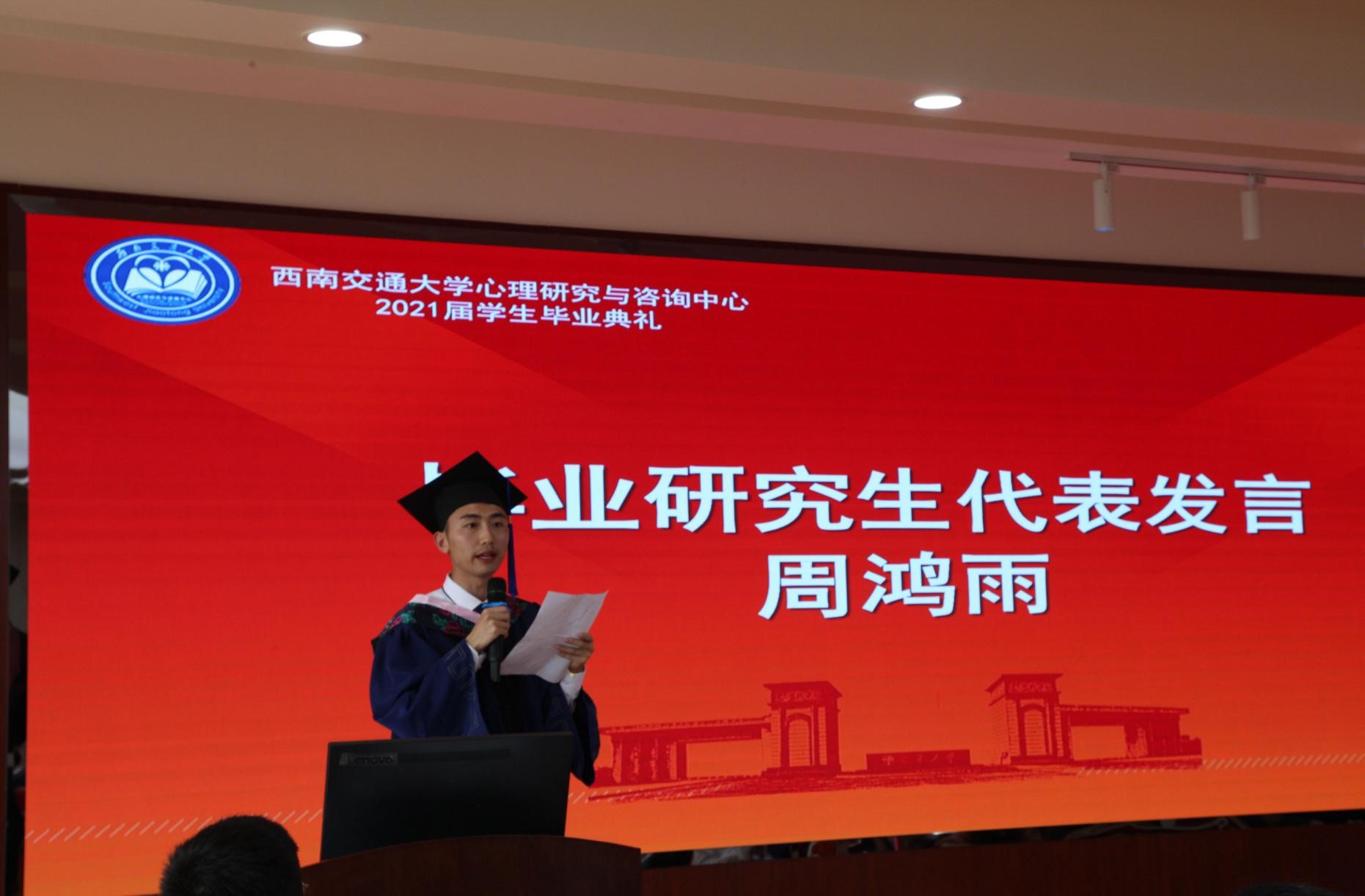 主任陈华教授首先致辞。陈主任恭喜各位同学顺利毕业,希望大家以梦为马、不负韶华,谨记“竢实扬华、自强不息”的交大精神,为国家的发展、民族的复兴作出心理人应有的贡献。
