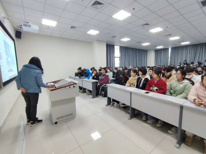 讲座伊始,田瑞琪对同学们的考前感受做了现场调查。在此基础上,她详细讲解了如何运用科学方法从生理、心理、行为等角度,有效识别压力预警信号。“适度的压力有利于身心健康,促使我们采取积极行为;但过度的压力会影响工作效率,甚至给我们的身心带来许多不良后果。”田瑞琪说道。