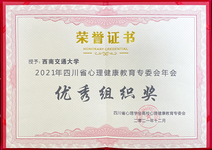 荣获“2021年度四川省普通高校心理健康教育工作先进单位”、“2021年四川省心理健康教育专委会年会优秀组织奖”,3d色情