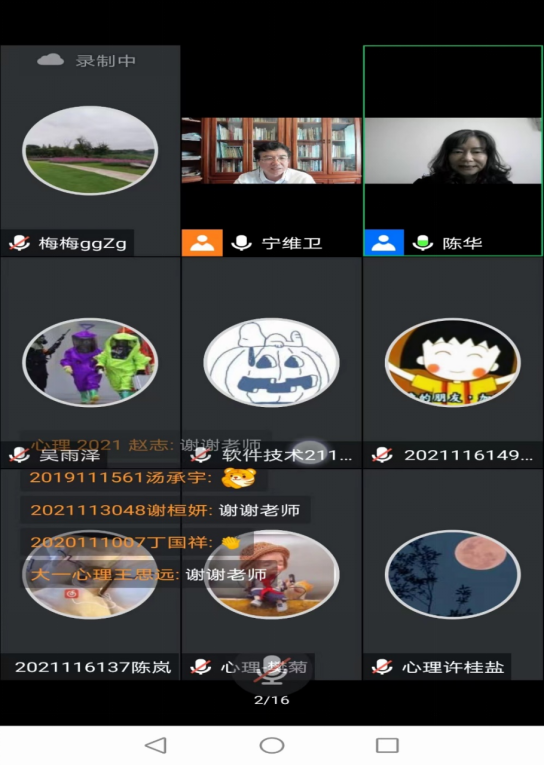 陈华主任对本次讲座进行总结。她指出,宁维卫教授的讲述引发了我们在疫情条件下的哲学思考,帮助同学们澄清怎么认识成长过程中出现的困惑。她提醒同学们要正视疫情中产生的心理问题,培养积极的心态。本场讲座在对宁维卫教授精彩报告的感谢和热烈掌声中圆满结束。