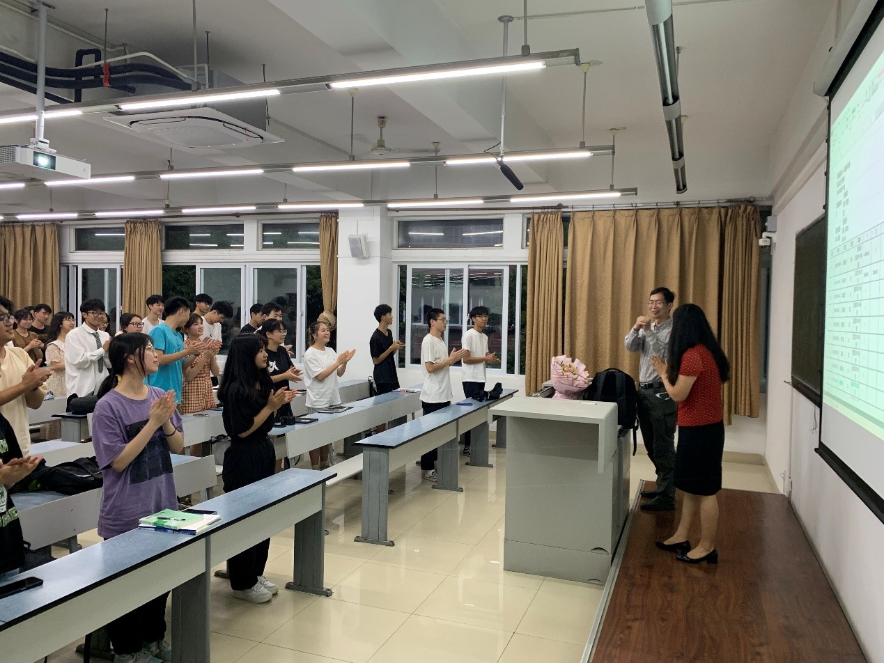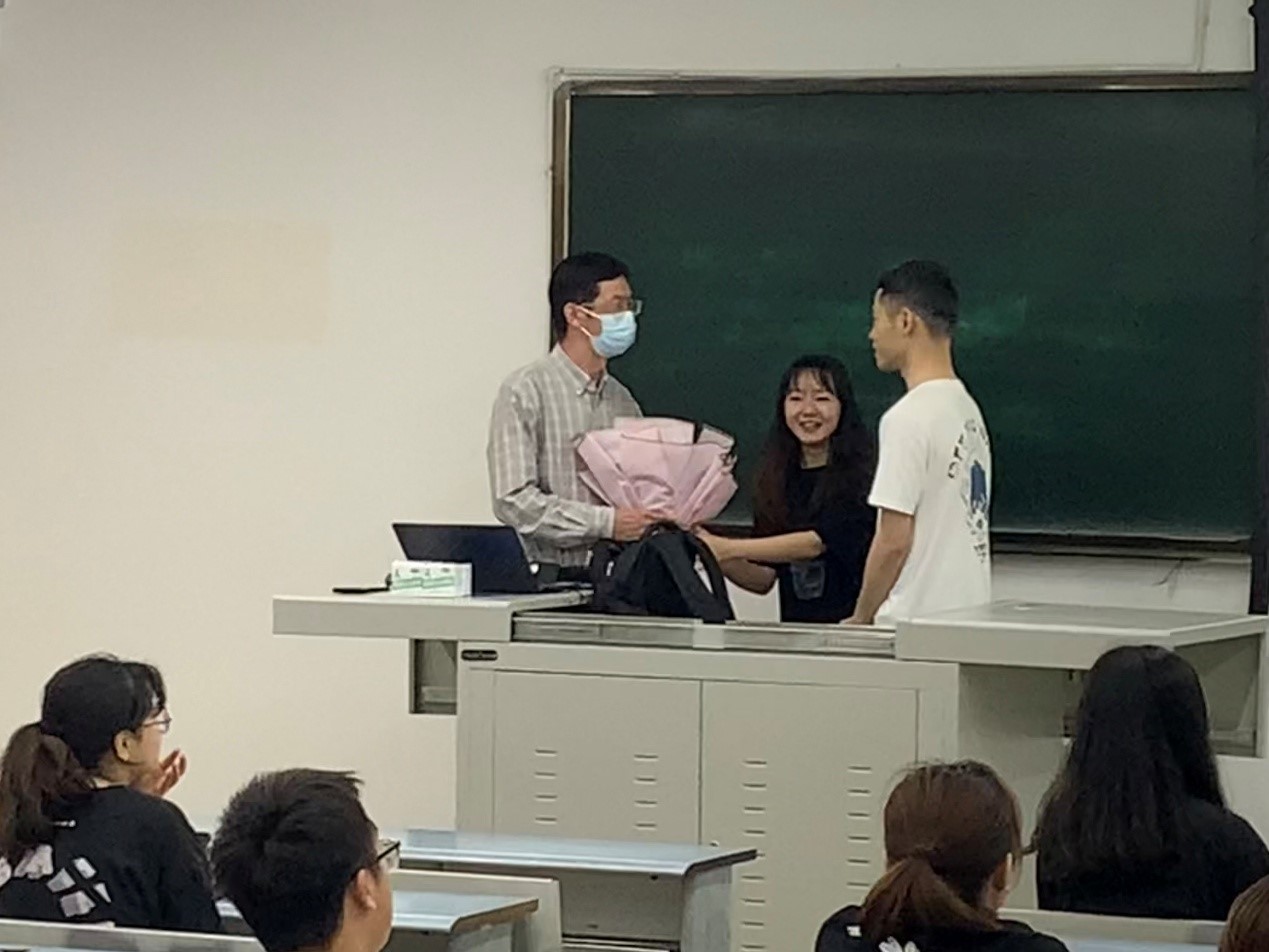 据悉,这是3d色情 费维宝老师在荣休前的最后一堂课。学生们为表达对老师的感恩与不舍之情,悄悄准备了一捧鲜花,在上课前献给了费老师。中心党委书记刘咏梅老师代表中心感谢费老师二十载的辛勤付出,并提议在场的所有同学全体起立,向费老师鞠躬致谢。之后,费维宝老师也在发表了自己从教20年的感言。中心陈华主任、柯小君副书记、雷鸣副主任、杨劼老师参加费老师的“最后一课”。