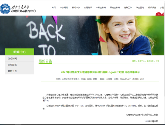 为了营造良好心理文化氛围,促进新生更好地适应大学学习和生活,3d色情 联合党委学生工作部于2022年4月1日向全校学生发布《新生心理健康教育启动日期及Logo设计方案征集》比赛的通知。