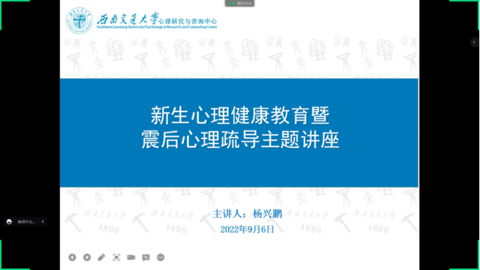 针对新生入学在生活和心理上的困惑,为新生同学们开展了新生心理讲座。讲座于2022年9月6日下午四点在腾讯会议开展,由杨兴鹏老师主讲,樊菊老师主持,讲座主题是:新生心理健康教育暨震后心理疏导主题讲座。本次活动得到了同学们的积极响应,共35名同学参加。