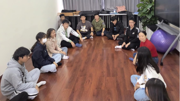 活动伊始,高飞老师带领同学们盘腿围坐成一个圈,之后详细介绍了本次团辅活动的具体流程及注意事项。