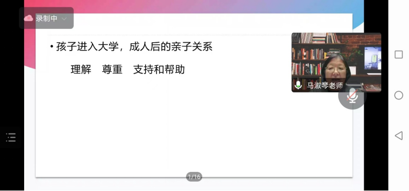 马老师讲到,在孩子进入大学后,可能会在学习、生活、人际、管理等方面面临各种新的挑战,孩子可能会出现一些暂时不适应的情况。作为家长,一定要理解孩子的处境。在理解的基础上尊重孩子想要成为一个成人的心理需要,并留给孩子一定的心理发展空间。与此同时,对孩子的合理需要要适当满足。尤其是孩子的心理需要,家长们千万不能忽视。