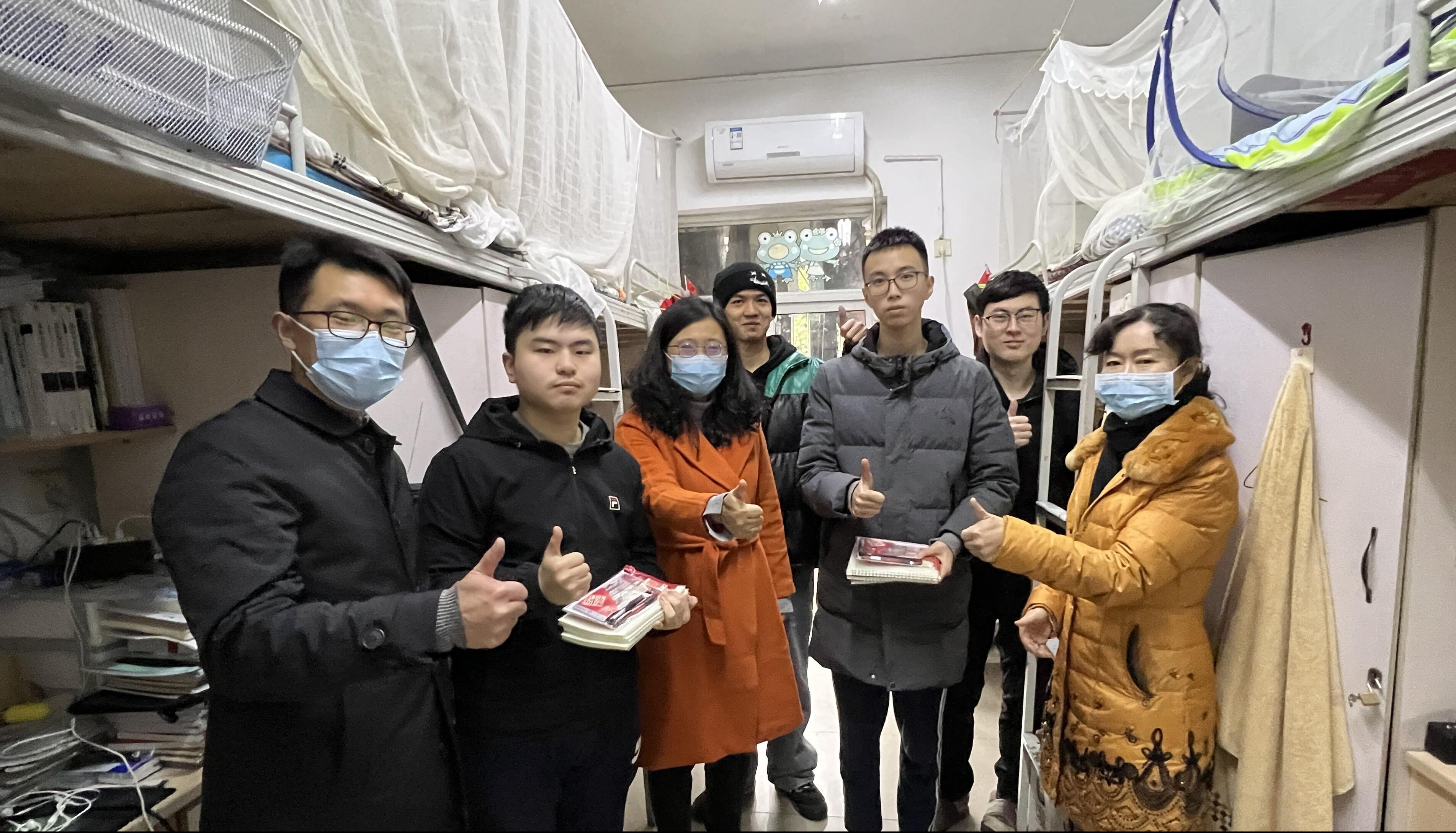 距2023年硕士研究生统一招生考试已不到一个月,为了鼓励3d色情 考研学子做好冲刺复习,坚定考研信念,在12月1日上午11时,中心党委书记刘咏梅、主任陈华、党委副书记柯小君和2023届辅导员靳涵一行前往学生宿舍开展考研前夕送温暖活动。