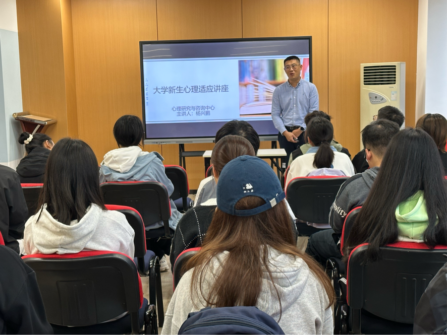 在X5229召开了以“大学生新心理适应”为专题的讲座。此次讲座由杨兴鹏老师主讲,全体新生参与。与此同时,为了便于同学们利用好实验室资源,并保护好自己的人身安全,中心开展了由马岳德老师主讲的实验室安全培训。