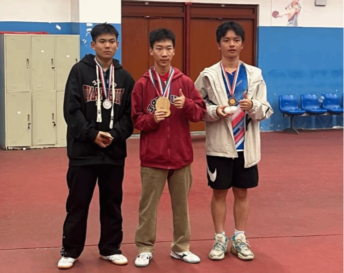 获得新生排球赛冠军,同时田耀文同学获得乒乓球单打亚军。