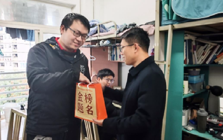 党委书记刘咏梅、副主任(主持工作)雷鸣、党委副书记柯小君以及2020届辅导员李艳一行前往学生宿舍开展考研前夕送温暖活动,帮助同学们坚定考研的信念,以更好的状态迎接即将到来的考试。