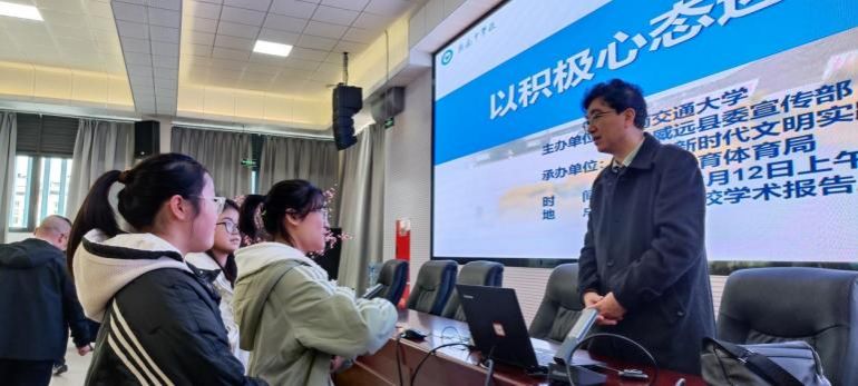 12月12日,宁维卫教授走进威远中学开展题为《以积极心态迎接未来挑战》的专题讲座。他通过“高考”话题开篇,引出“关于失败,最有启发的看法”的话题,用幽默风趣的语言带动大家积极参与到话题讨论中,引导他们深入思考,让在座的师生了解压力的两面性以及如何正确应对压力,鼓励师生倾吐内心烦恼,并一一耐心地解答他们的困扰,引导大家选择健康的生活方式,保持乐观平和的心态,让心理和生理健康同步发展。