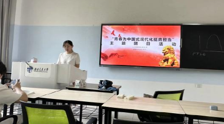 2023级本科生团支部于X9303开展主题为“青春为中国式现代化挺膺担当”的学习活动,由团委书记(青年讲师团成员)樊菊主持本次活动。会上主要学习了习近平总书记在纪念五四运动100周年大会上对青年的寄语以及党团知识。