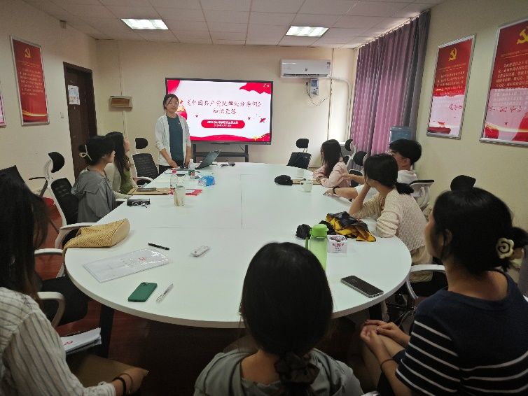 在本次会议的最后,党支部组织全体参会成员开展了党纪知识竞赛活动,巩固党纪学习教育的阶段性成果。将与会人员分为三组进行“车轮战”和“抢答战”,旨在以考促学,将党纪学习教育的重点通过考题的形式再次向同志们教育强化。通过党纪学习教育,参会成员对党纪有了更加深刻的认识和理解,在今后的学习和工作中会严格遵守党纪,增强底线思维,确保红线意识。