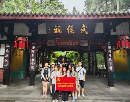 2022级研究生党支部组织开展以“悟三国廉洁文化 强时代党性纪律”为主题的武侯祠研学活动。这次活动由党支部书记吴昊阳组织,党支部全体党员及预备党员参加。