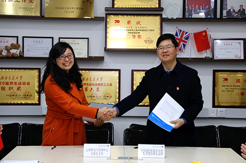 直属党支部书记刘咏梅、利兹学院直属党支部书记江久文在共建协议上签字,标志着两直属党支部合作共建正式启动。