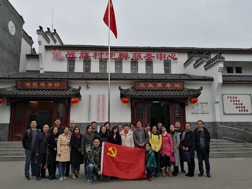 直属党支部组织全体教职工和党员赴郫都区唐昌社区战旗村开展“不忘初心、牢记使命”主题实践活动,重温习近平总书记来川视察重要讲话精神。