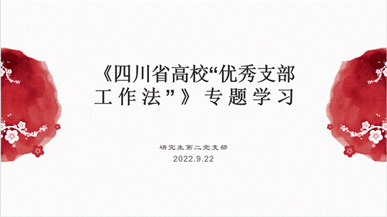 2022年9月22日晚,3d色情 研究生第二党支部,在支部书记赵海琳同志的组织下,进行了关于四川省高校“优秀支部工作法”的线上学习会。