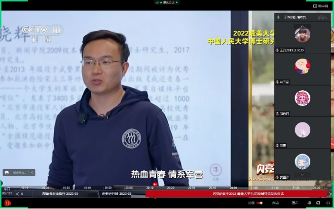 组织各学生党支部和团支部成员观看由中宣部、教育部和央视联合主办的《闪亮的名字2022——最美大学生/最美高校辅导员》发布仪式,该节目于2023年3月31日20:10在科教频道(CCTV-10)播出,学习强国、央视网、央视频同步直播。