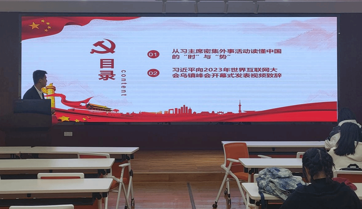 最后,由苏放同志组织理论学习研讨,党支部就“从习近平密集外事活动读懂中国的‘时与势’”、“习近平向2023年世界互联网大会乌镇峰会开幕式发表视频致辞”展开了学习与探讨, 推进中国特色大国外交是新时代党和国家事业发展的必然要求。应对世界百年变局,需要推进中国特色大国外交。