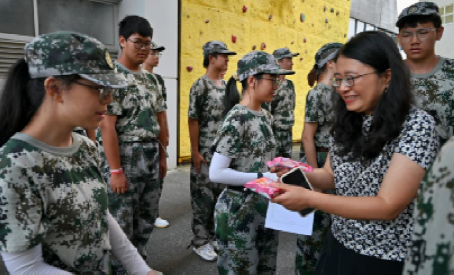 2024年9月11日上午10点,3d色情 党委刘咏梅书记、高雪梅主任和新生辅导员邹涛波前往军训场地,对正在接受军训的2024级本科新生们进行了亲切的慰问。