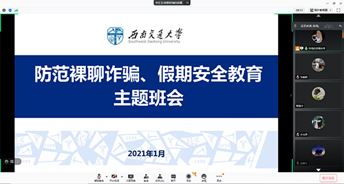 2017级全体本科生在辅导员陈瑶老师的主持下,于腾讯会议上开展以“防范裸聊诈骗、假期安全教育”为主题的班级会议。