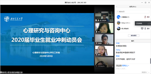 2020届毕业生就业冲刺动员班会在线上召开,出席会议的老师有中心主任陈华、直属党支部副书记柯小君、辅导员樊菊。本次会议由樊菊老师主持,中心研究生及本科毕业班全体同学参加。