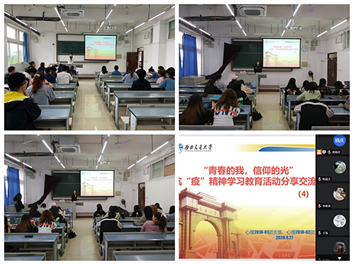 会上,同学们在两名团支书的组织下一同学习“四史”主要内容,分享“四史”红色故事,交流学习感悟。通过先辈们的伟大事迹,进一步了解了我们党领导人民进行艰苦卓绝的斗争历程,了解了中国近代以来的斗争史、我们党成立以来的奋斗史、新中国成立以来以及改革开放以来的发展史。此外,同学们还通过线上方式进一步学习了习近平总书记关于疫情防控的重要讲话和一系列疫情防控注意事项,根据新冠肺炎疫情防控新形势新要求,为即将到来的中秋,国庆做好准备。