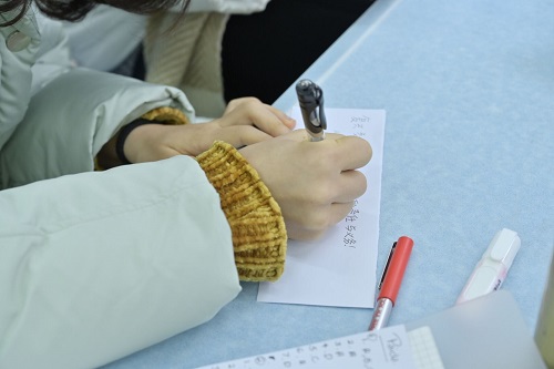 听着感人的歌曲,团员们在明信片上写上自己对母校的祝福,最后团员们将自己写好的明信片交到团支书手上。其中,许永芳同学写道:“精勤求学,敦笃励志;果毅力行,忠恕任事;尽心尽力地做一名合格地‘五有’交大人,不忘初心,牢记使命”,肖博文同学写道:“回顾过去,我们无比自豪;展望未来,我们信心十足,在今天让我们再次向母校致以最诚挚地祝福,愿交大永远辉煌,永远充满生机”。