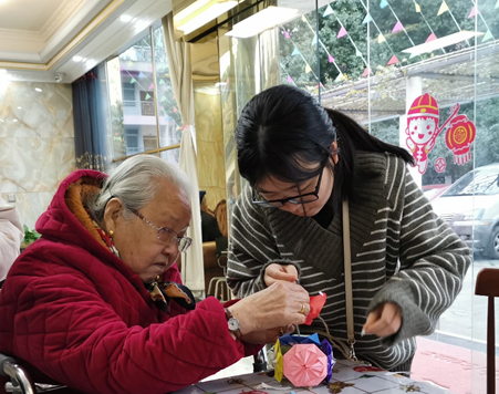 此次活动内容主要是和老人们一起制作纸灯笼。活动中,有的志愿者耐心地给老人示范折纸,协助老人们一同完成灯笼的制作,有的志愿者陪老人聊天,听老人讲讲他们的过去。老人们阵阵欢笑声就是对志愿者们最好的奖赏。