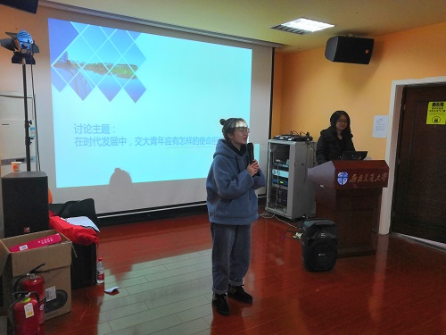 随后,团员们就“在新时代发展中,交大青年该有怎样的使命担当”这一问题展开讨论。一些同学提出,交大学子们应当努力学习,报效祖国;也有部分同学表示应该从身边小事做起帮助他人。其中,入党积极分子吕雅玲对观看的影片感触极深,她上台谈到:“我为中国高铁发展取得的巨大成就感到由衷得自豪与高兴,我认为在新时代的发展中,交大青年应该不忘初心牢记使命,在打好专业基础的同时积极参与祖国建设,为社会做出贡献。”