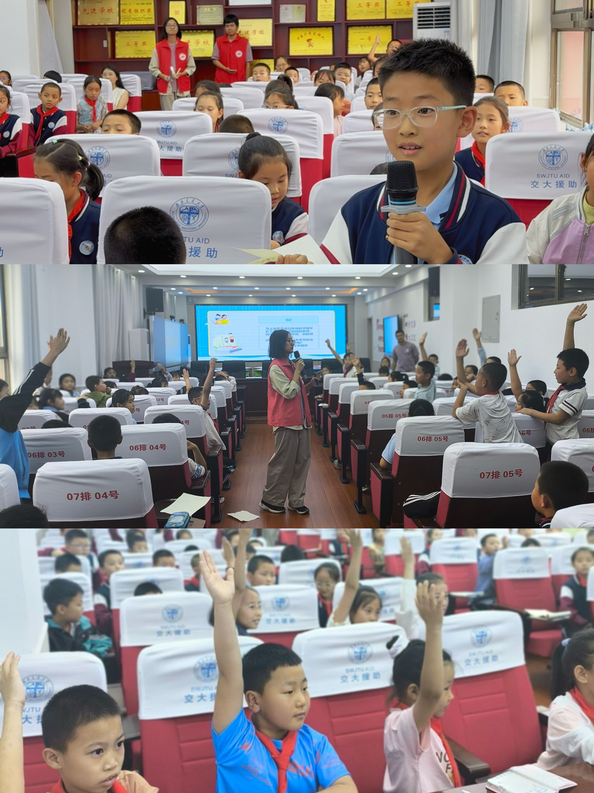 实践队抵达秦安县王尹学区王尹中心小学后,迅速投入工作,为三、四年级四个班的 140 余名儿童精心筹备并开展了一系列心理健康讲座。此次讲座围绕“搭建自信金字塔” 和 “坚强意志,面对挫折” 两大主题展开。实践队员们充分结合该年龄段儿童的心理特征,巧妙设计课堂环节。通过充满趣味的 “抓乌龟” 小游戏,瞬间吸引了同学们的注意力,活跃了课堂气氛。随后,又借助 “掌声响起来” 和 “鸡蛋变超人” 两个小游戏,自然流畅地引入自信培养和应对挫折的课堂主题。针对当前年龄段儿童常见的心理问题,实践队员们从问题识别、思维模式塑造到解决方法传授,进行了全面且细致的培训讲解。课堂上,同学们积极踊跃参与互动,气氛热烈。