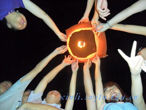 最后的一个活动是放孔明灯。每个同学发到了一张小纸片,大家把自己的愿望和对同学的赞美与祝福写在上边,然后一起放飞,放飞那满满的祝福和同学彼此真诚的赞美。这个活动,让大家说出了自己的心声,增进了同学间的了解与友谊。看着冉冉升起的孔明灯载着祝福飞去,同学们脸上挂着笑容,心里满是幸福,正如同学所说:“这次活动,让我产生了深深地幸福感”。