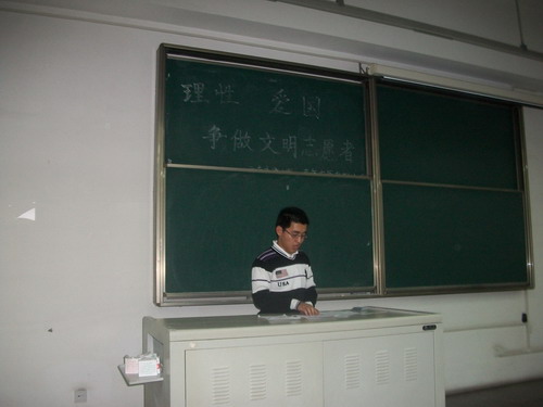 10月22日七点十分,心理青协所有副部级以上成员参加了由校青协在X2217教室举办的关于理智爱国——争做文明志愿者的游行报告会。