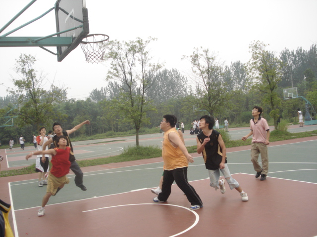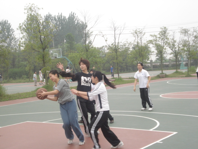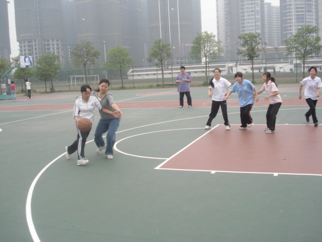 此次的篮球比赛分两组举行,一组是男生队,另一组是女生队。首先是女生队的比赛,她们是第一次参加篮球比赛,但在场上表现很积极,打得很努力。中场休息时,女篮队员们就聚在一起总结经验,改进战术。女生打完后,还请在场的男生提意见,以便继续改进。