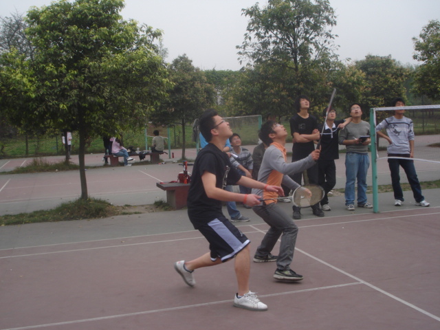 除了正式的比赛外,同学们还自己打友谊赛,跟不同的对手较量,从而提升自己的球技。不熟练的同学也积极向水平高的参赛选手请教、学习,争取较大的进步。由于天气闷热,所有人都满头大汗,但大家还是兴致勃勃,热火朝天。
