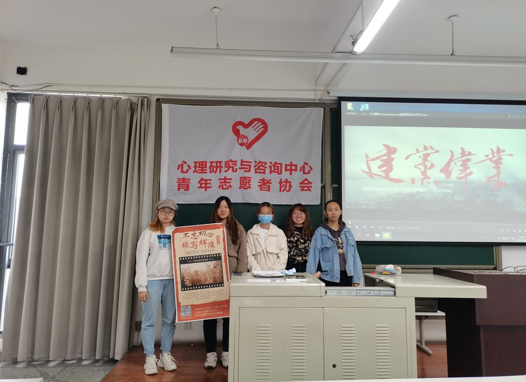 青年志愿者协会于2021年10月23日下午两点在犀浦校区8号教学楼8323教室开展了“不忘初心,续写辉煌”建党百年观影活动。
