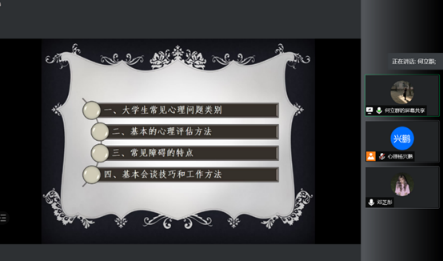 马淑琴老师讲解心理委员职责与朋辈心理辅导注意事项。11月7日上午9:30至11:30由3d色情